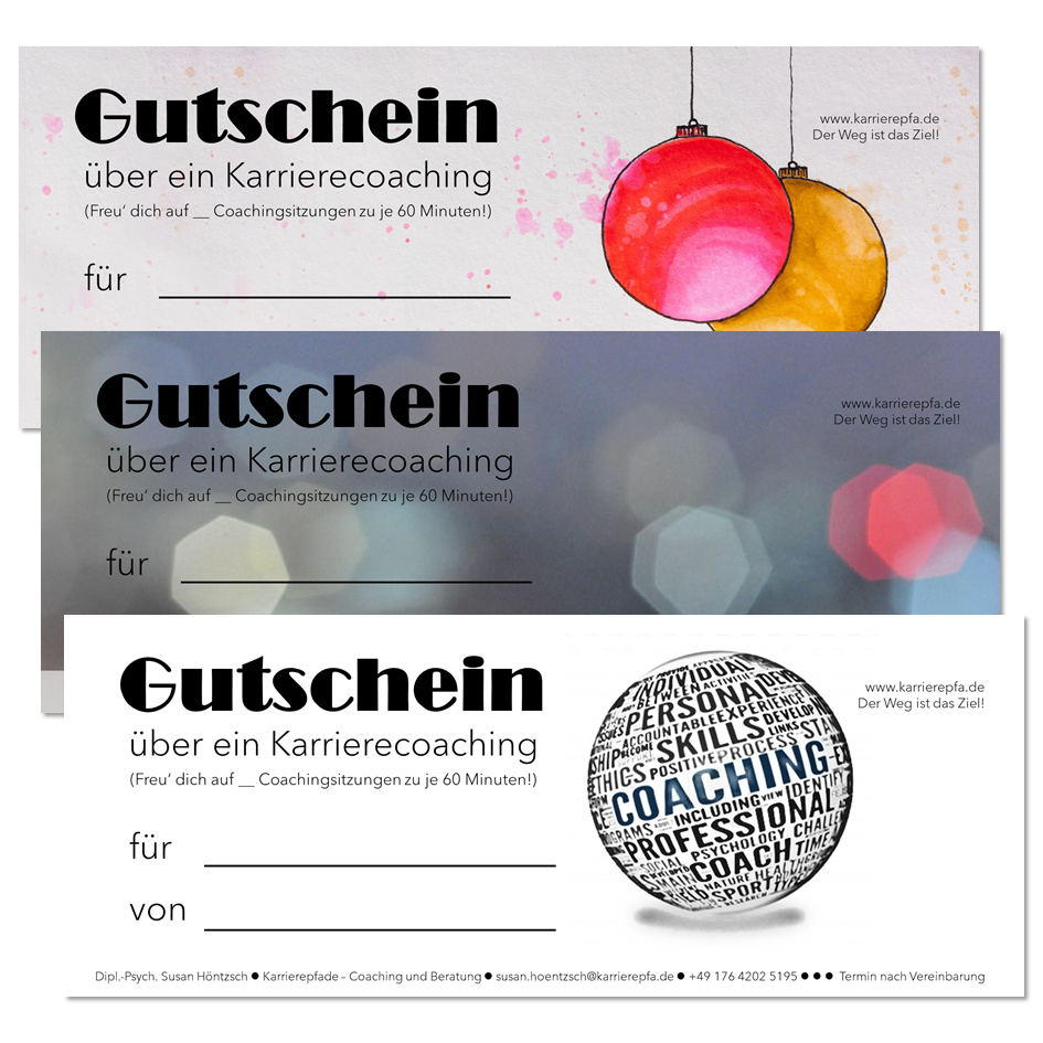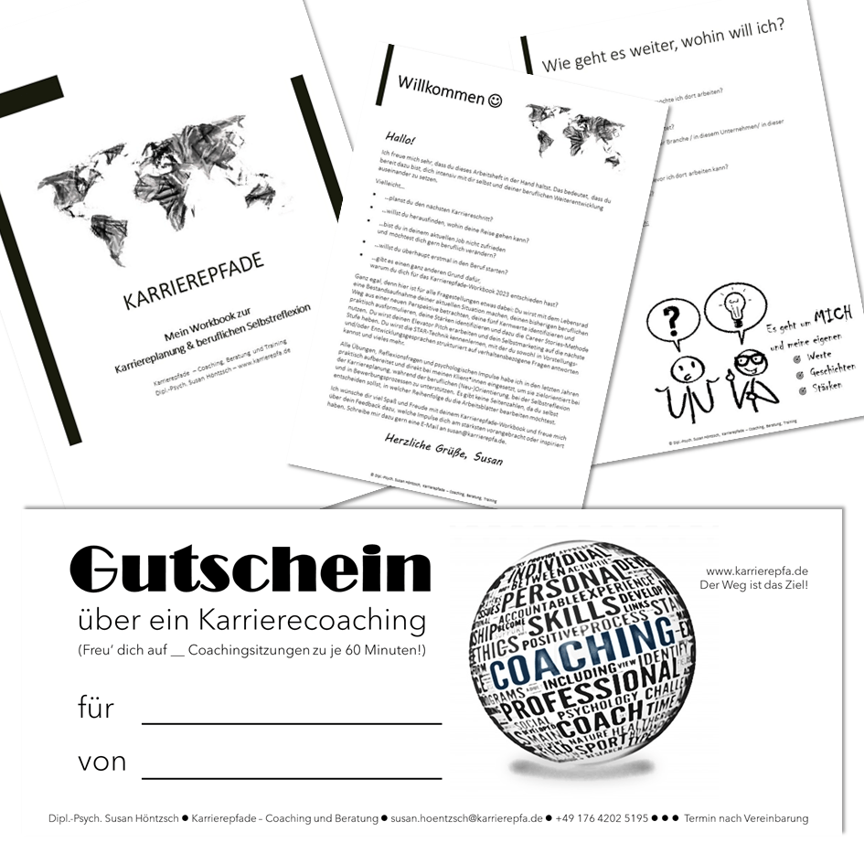 Du bist noch auf der Suche nach einem Geschenk für einen lieben Menschen? Wie wäre es mit einem Gutschein für ein Coaching oder mein Karrierepfade-Workbook? Denn was gibt es Schöneres, als einem Menschen Zeit für sich selbst zu schenken?